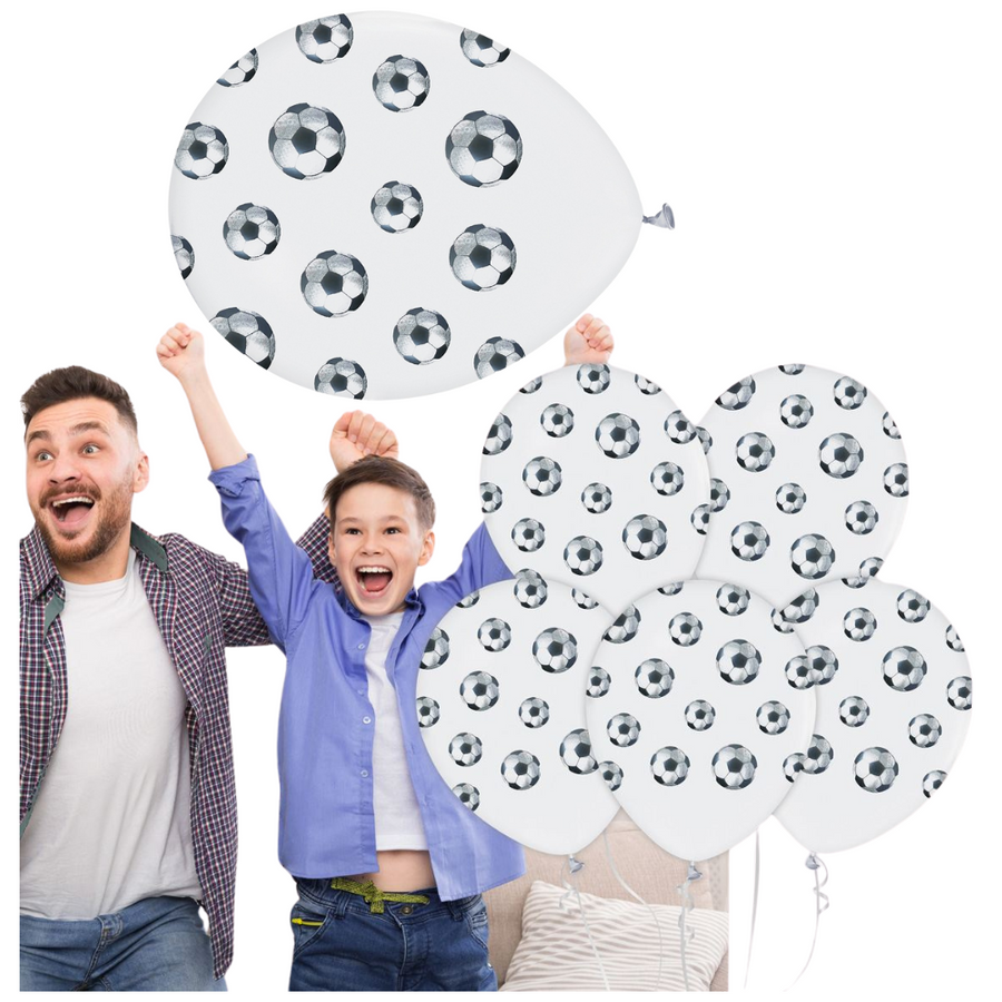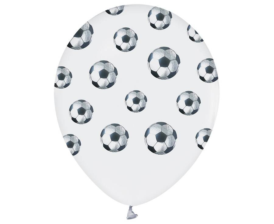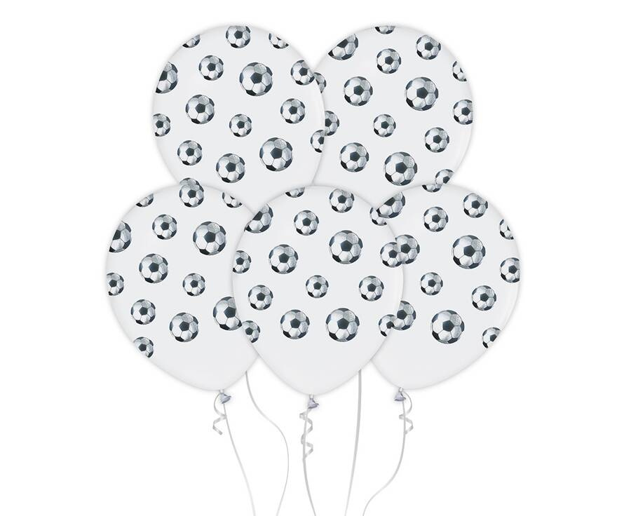 - Sportowy design – czarno-białe balony z nadrukiem piłek nożnych.