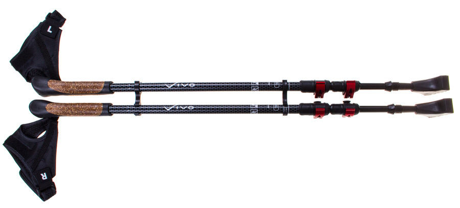 Posiadają regulowaną wysokość w zakresie 67-135 cm. Korkowe, antypoślizgowe rączki zapewniają doskonały, pewny chwyt oraz są przyjemne i delikatne dla skóry dłoni, dzięki czemu ich nie podrażniają nawet podczas dalekodystansowych spacerów. Kije Vivo wyposażone zostały również w opaskę posiadającą standardową regulację, której zadaniem jest zabezpieczenie przed ich upuszczeniem oraz pomoc w wypracowaniu odpowiedniej dla siebie techniki stawiania kijków.