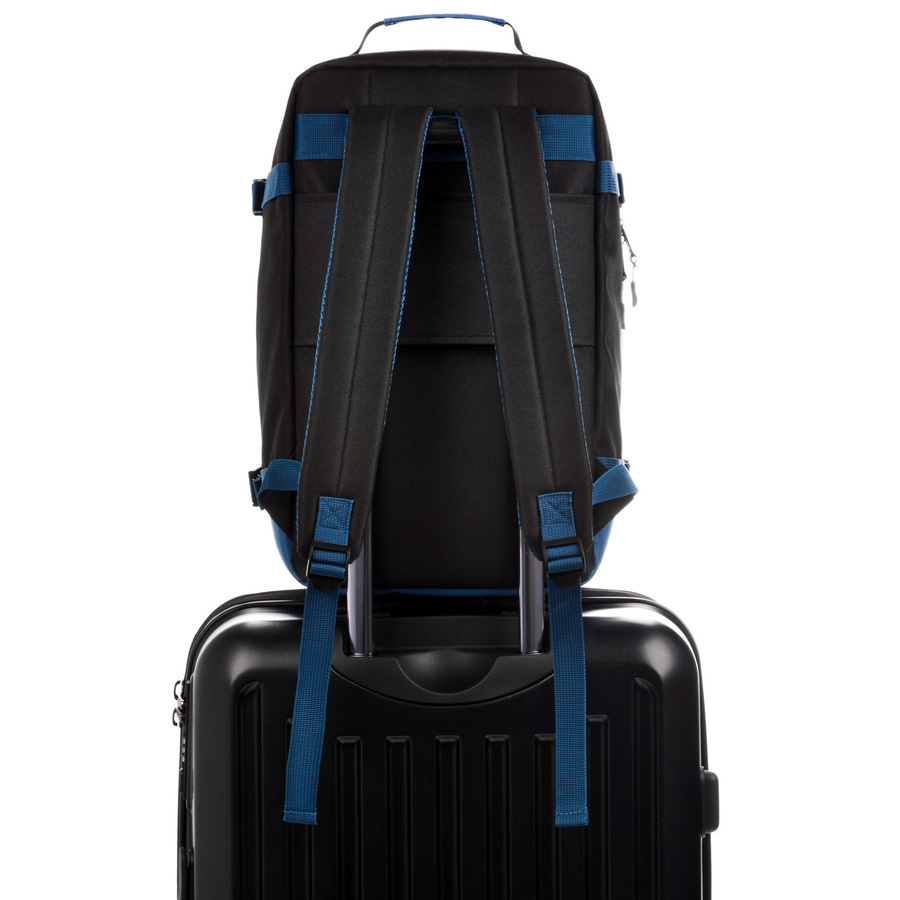 Główna komora oraz trzy mniejsze kieszenie – w tym jedna siateczkowa – zapewniają doskonałą organizację i łatwy dostęp do wszystkich niezbędnych przedmiotów. Dodatkowa przednia kieszeń zapinana na zamek świetnie nadaje się na dokumenty, telefon lub tablet. Specjalny uchwyt do mocowania plecaka na rączce walizki zwiększa komfort podróży, ułatwiając przemieszczanie się z większym bagażem.