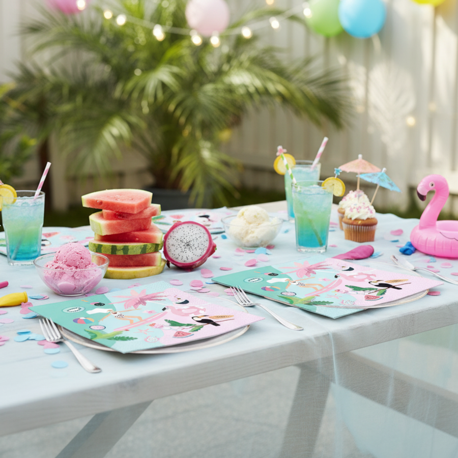 Wprowadź na swój stół powiew lata dzięki serwetkom papierowym z kolekcji „Summer – Let’s Party”! Barwny nadruk inspirowany plażą, palmami, słońcem i wakacyjnym relaksem sprawi, że każda impreza nabierze letniego klimatu. To doskonały wybór na urodziny, garden party, pikniki, przyjęcia w ogrodzie i wszystkie spotkania, podczas których króluje radość i dobra energia.