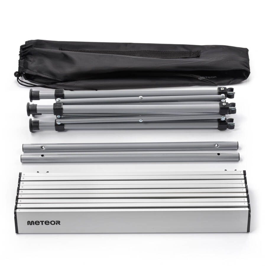 Stół turystyczny Meteor Bankada to niezastąpiony element wyposażenia każdego miłośnika biwaków, wypraw pod namiot czy rodzinnych wypadów za miasto. Wykonany z nowoczesnego stopu aluminium, zachwyca lekkością – waży zaledwie 2 kg – przy jednoczesnej dużej wytrzymałości i stabilności. Idealnie sprawdzi się jako miejsce do spożywania posiłków na świeżym powietrzu, nawet dla czteroosobowej rodziny.