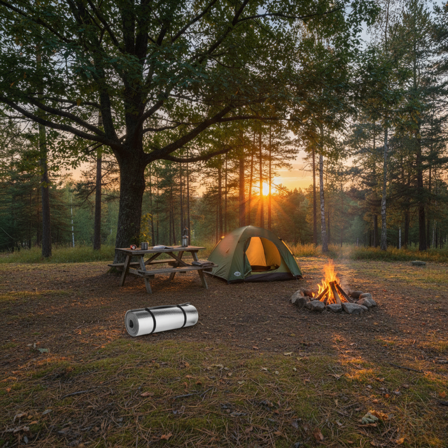 - Dwuwarstwowa konstrukcja – gruba pianka EVA + foliowa warstwa aluminiowa zwiększają izolację termiczną i wygodę snu.