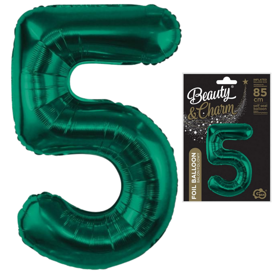 Balon Foliowy Na Urodziny Rocznice Butelkowa Zieleń Duży 85 cm Cyfra 5