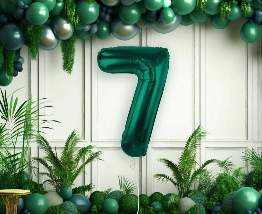 Balony foliowe cyfry "7" i "0" butelkowa zieleń – 85 cm