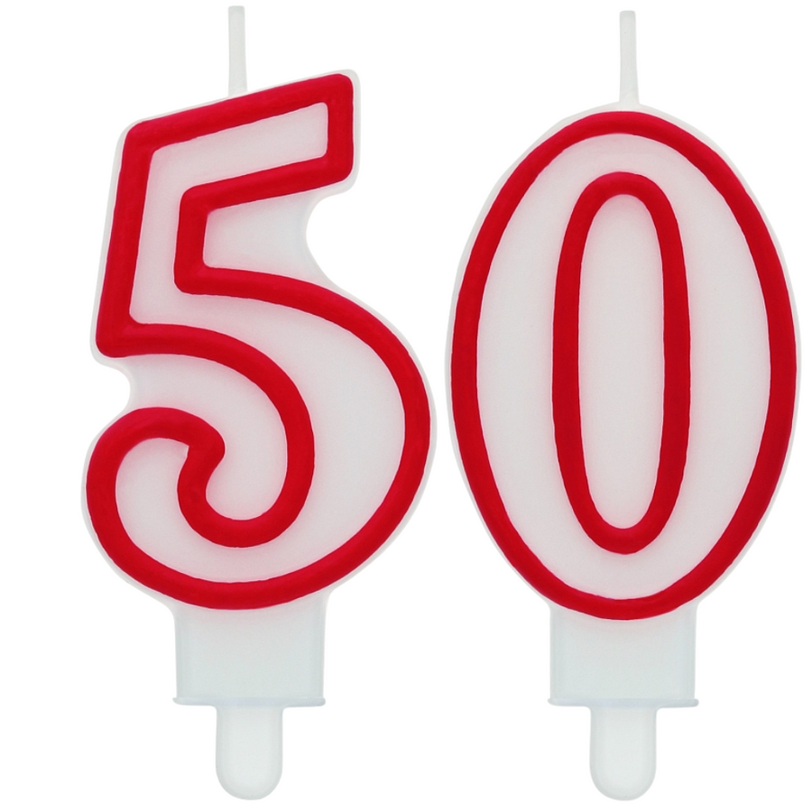 - Zestaw dwóch świeczek – cyfry "5" i "0" tworzące liczbę 50.