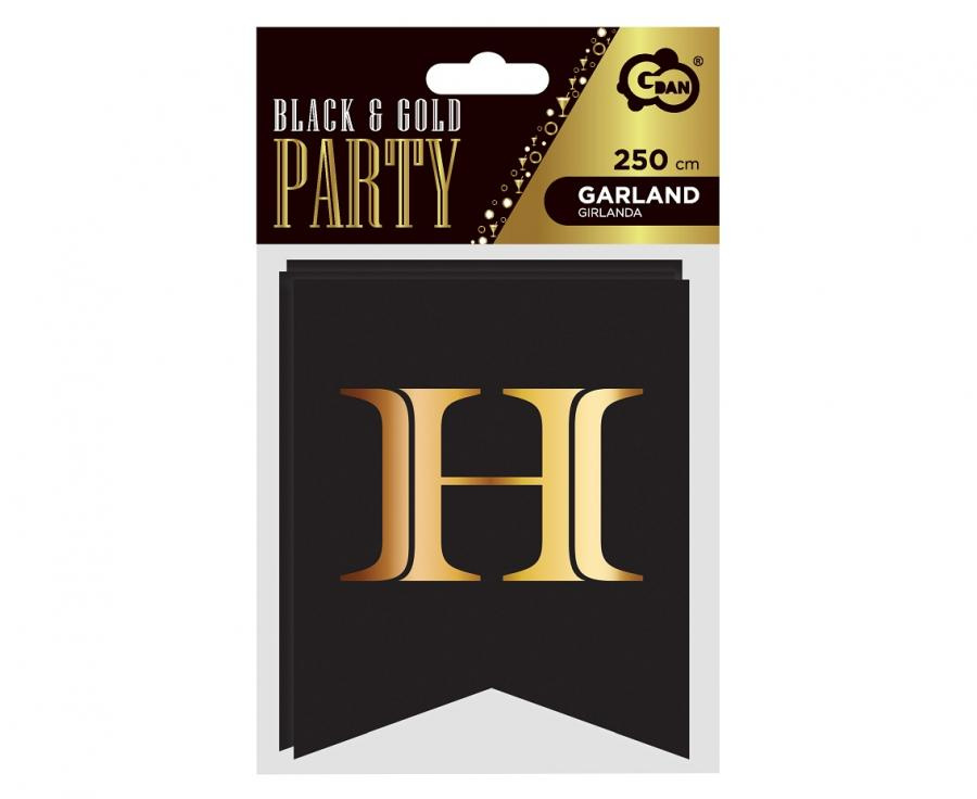 Stylowa girlanda „Happy Birthday” to szykowny dodatek, który odmieni każde urodzinowe przyjęcie. Klasyczne połączenie czerni i złota nadaje dekoracji wyjątkowej elegancji, dzięki czemu doskonale sprawdzi się zarówno podczas kameralnych spotkań, jak i większych uroczystości. Każda litera została umieszczona na osobnej czarnej chorągiewce z metalicznym, złotym napisem, co tworzy efektowną i gustowną kompozycję. Napis składa się z dwóch oddzielnych sznurków, które można zawiesić w dowolnej konfiguracji, dopasowując dekorację do przestrzeni.