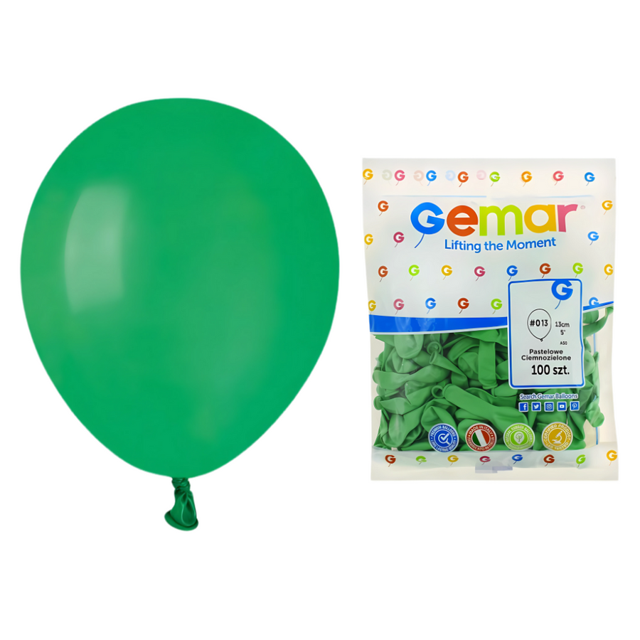 Balony Ciemnozielone Klasyczne Pastelowe Dekoracyjne GEMAR 13 cm 100 szt