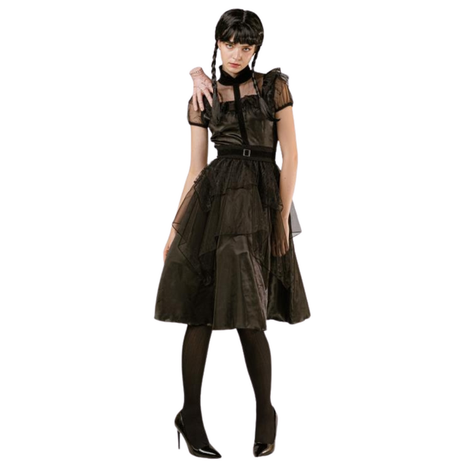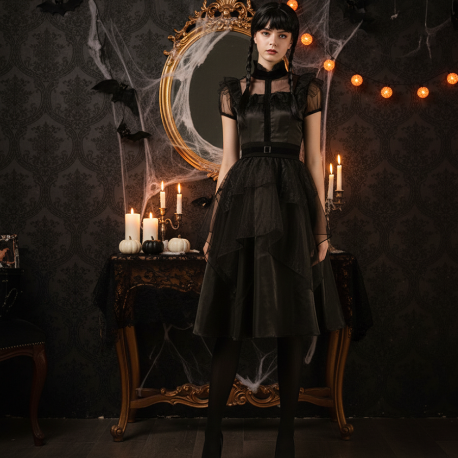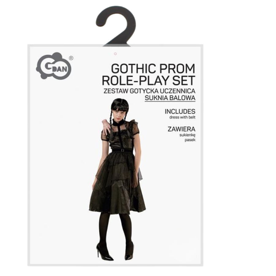 Kostium w gotyckim stylu to idealny wybór dla osób, które chcą wyróżnić się elegancją połączoną z nutą mrocznej tajemniczości. Składa się z dwóch elementów – czarnej sukienki i paska, które razem tworzą spójną, efektowną całość. Strój sprawdzi się doskonale podczas Halloween, imprez tematycznych czy wieczornych wydarzeń o klimacie grozy i gotyku.
