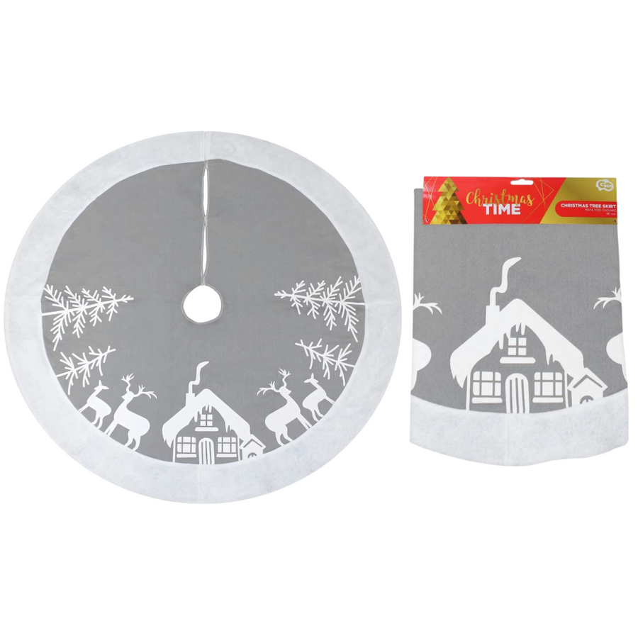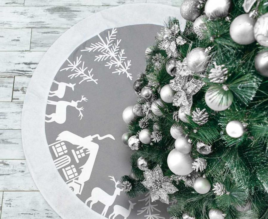 Mata Pod Choinkę Okrągła Dywanik Bożonarodzeniowy W Renifery Szary 90 cm