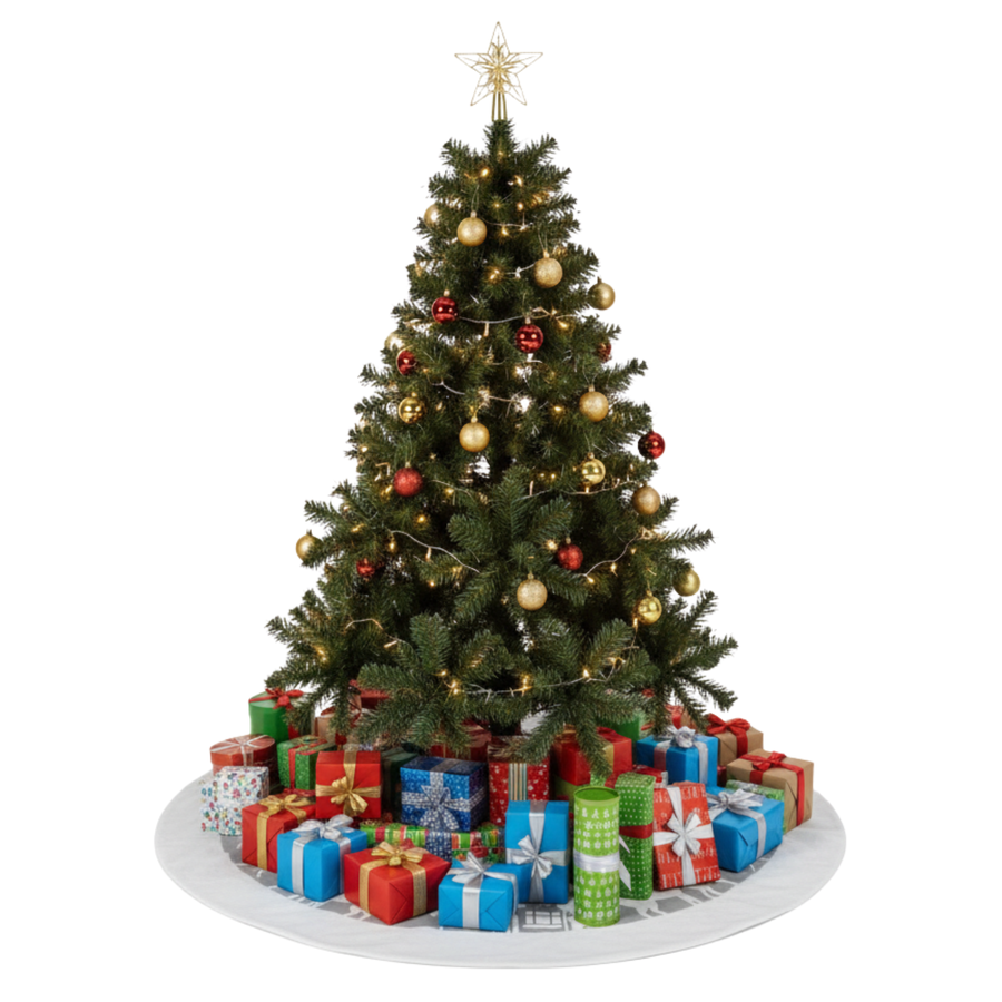 - Praktyczna ochrona podłogi – chroni przed opadającymi igłami oraz zakrywa stojak choinki, dbając o estetykę pomieszczenia.
