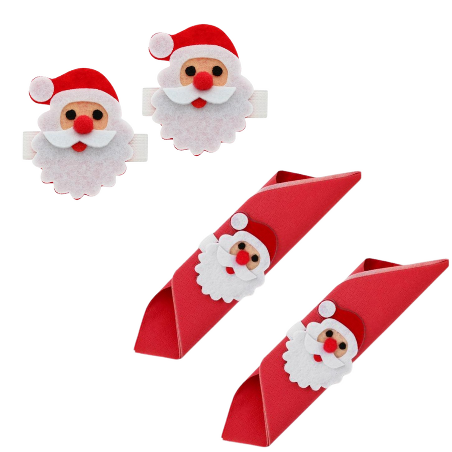 Urocze ozdoby na serwetki w kształcie Świętego Mikołaja to doskonały sposób, by wprowadzić świąteczny nastrój do Twojego stołu. Wykonane z miękkiego filcu, przedstawiają sympatyczną twarz Mikołaja z czerwonym nosem, białą brodą i czapeczką z pomponem. Dzięki elastycznym paskom z łatwością owiniesz je wokół serwetek, tworząc ciepłą i radosną atmosferę podczas świątecznych spotkań.