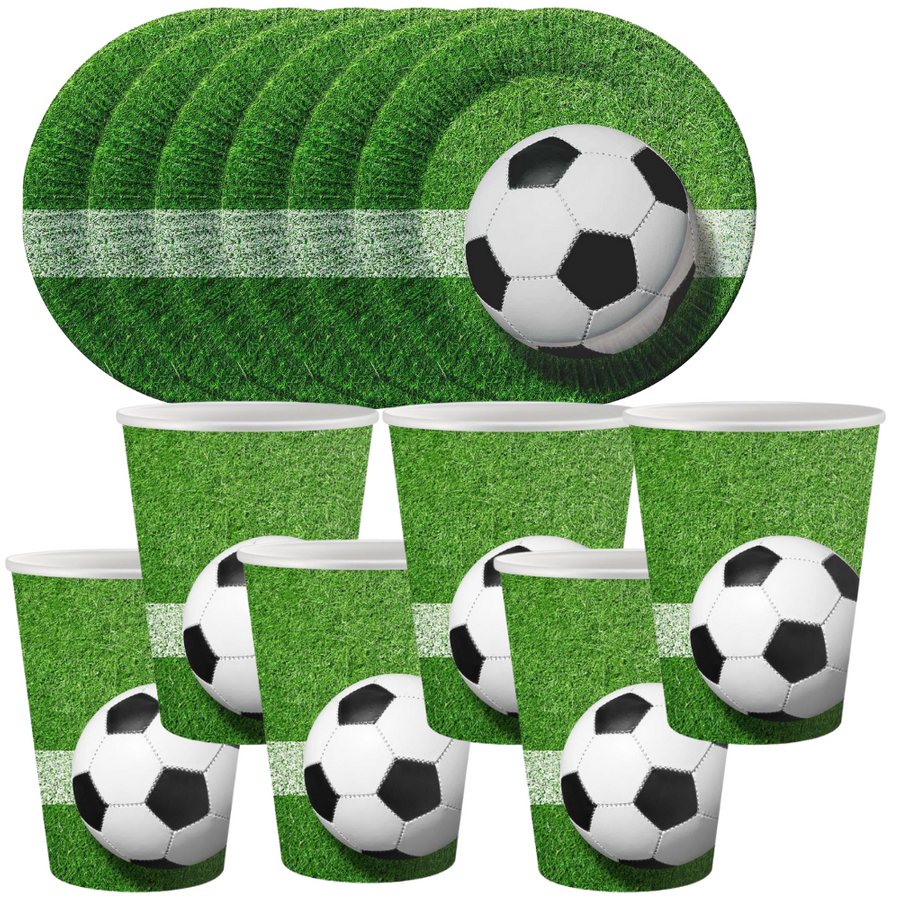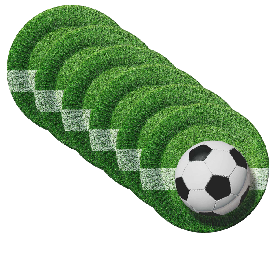 - Kompletny zestaw: zawiera 6 papierowych kubeczków (200 ml) i 6 talerzyków (18 cm) z motywem piłki nożnej.