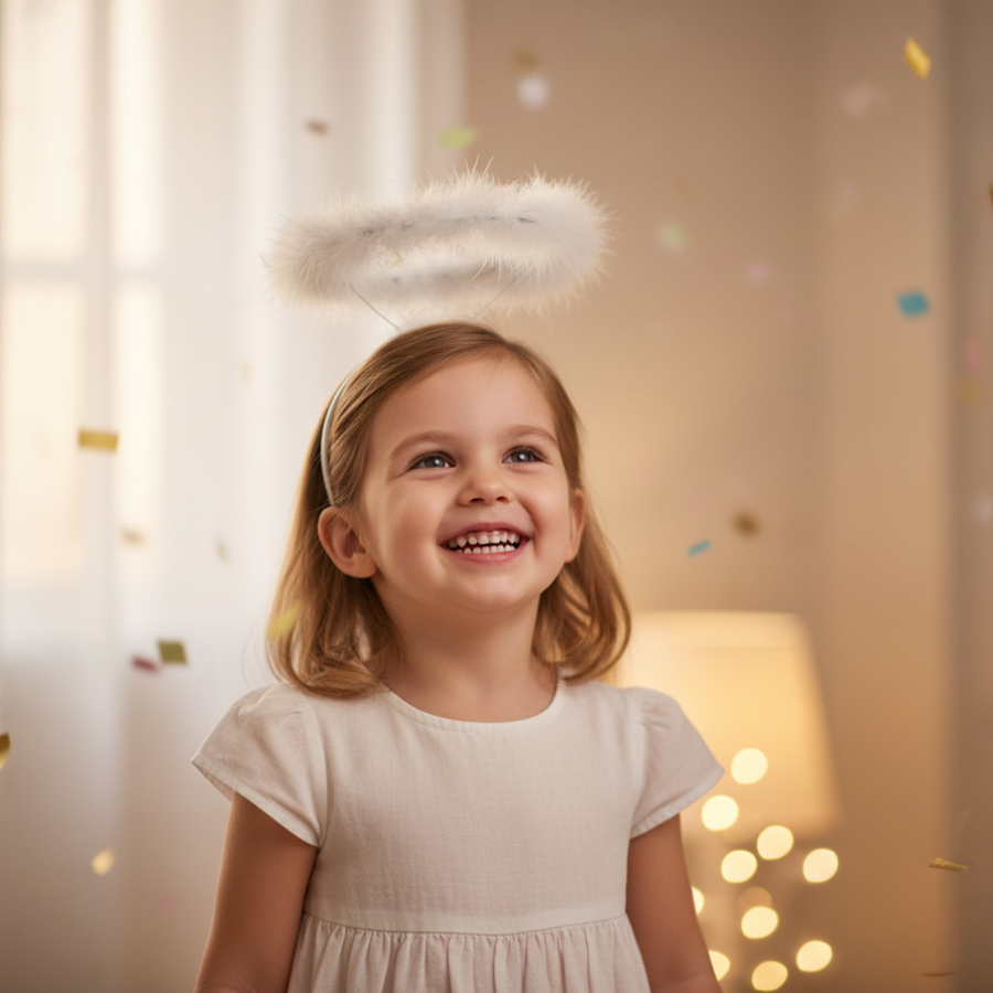 Ta aureola na opasce to doskonały dodatek do kostiumu anioła, który nada każdej stylizacji magicznego i bajkowego charakteru. Wykonana z lekkiego, miękkiego materiału w białym kolorze, ozdobiona puszystym futerkiem, prezentuje się subtelnie i elegancko. Elastyczna opaska zapewnia wygodne dopasowanie, dzięki czemu aureola pozostaje stabilna nawet podczas ruchu.