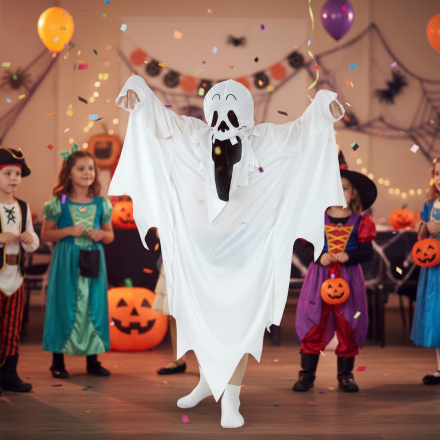 - Kostium – biała, luźna szata z postrzępionymi krawędziami nadająca klasyczny wygląd ducha.