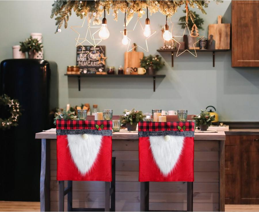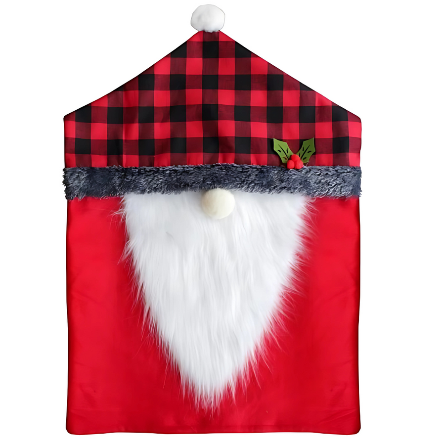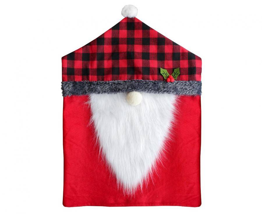 Pokrowiec świąteczny na krzesło – motyw Mikołaja z brodą i kratką