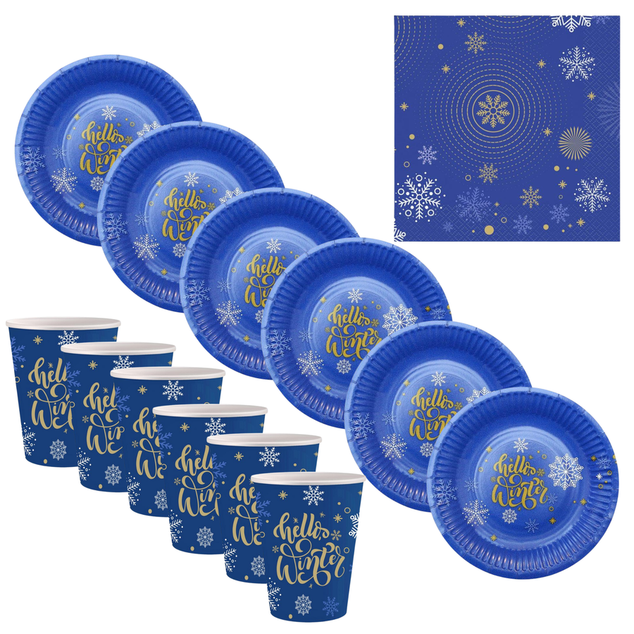 Zestaw dekoracyjny „Hello Winter” – 6 talerzyków, 6 kubeczków i 20 serwetek