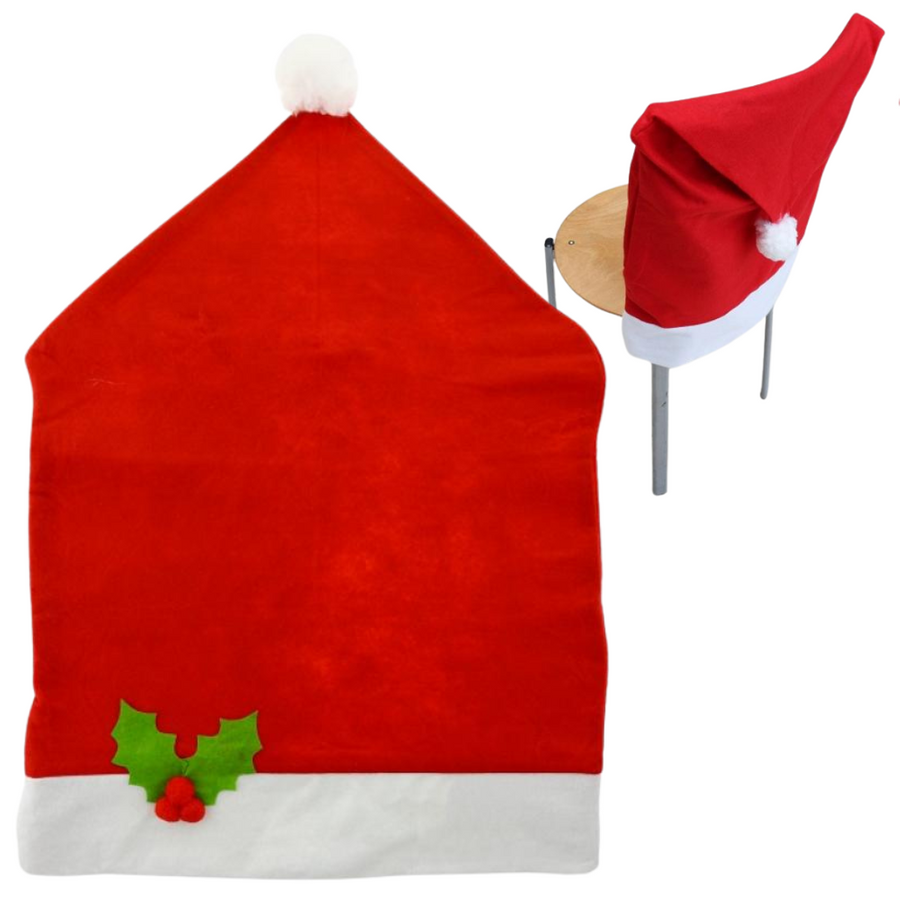 Pokrowiec świąteczny na krzesło – czapka Mikołaja z ozdobą ostrokrzewu 49x72 cm