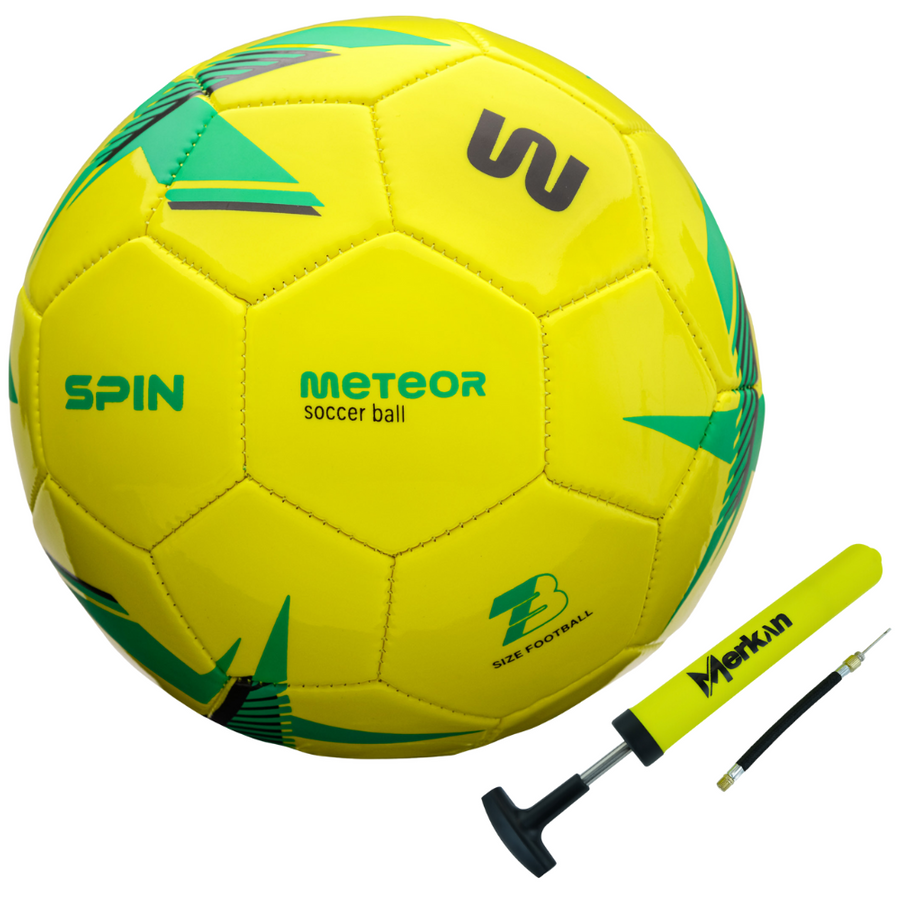 Piłka nożna Meteor Spin + Pompka LC-3225 – zestaw dla miłośników futbolu