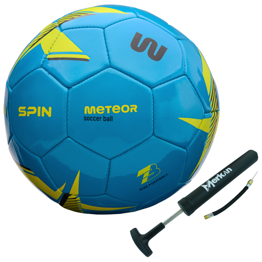 Piłka nożna Meteor Spin + Pompka MERKAN LC-3225 – zestaw dla miłośników futbolu