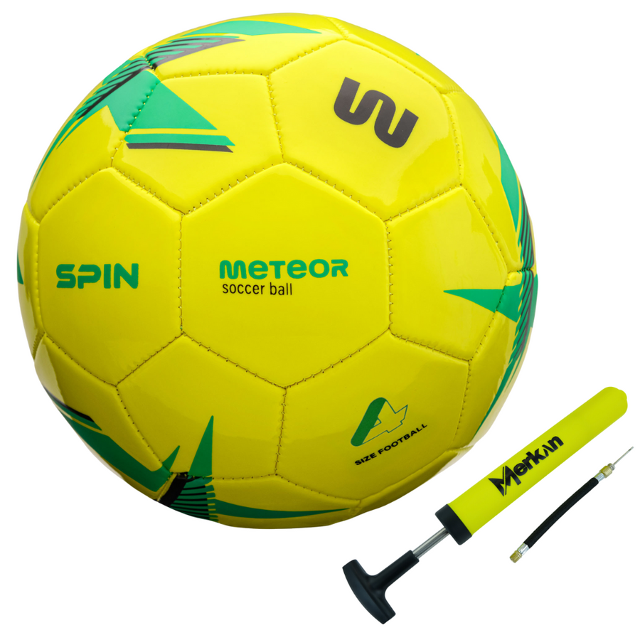Piłka nożna Meteor Spin + Pompka LC-3225 – zestaw dla miłośników futbolu
