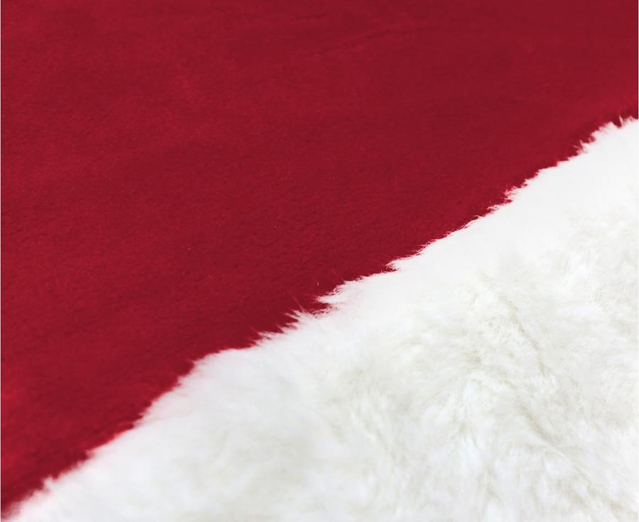 - Klasyczny wygląd – czerwone tło, biały pasek i miękki pompon tworzą ponadczasowy świąteczny styl.
