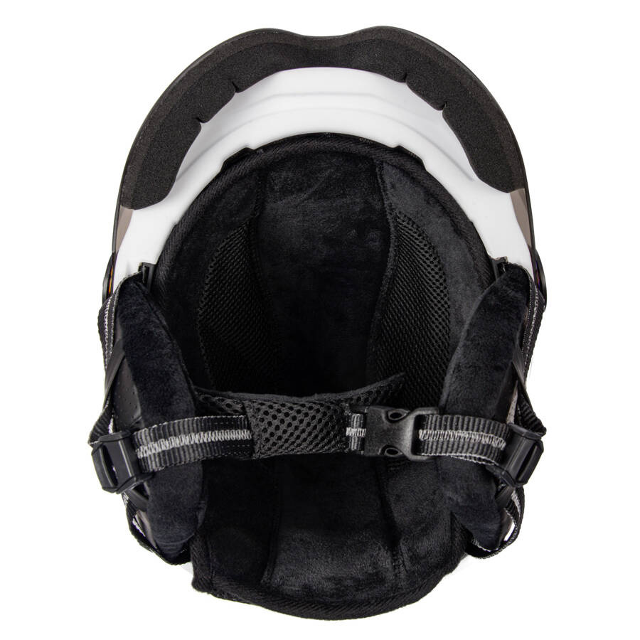 - Wbudowana szyba z filtrem S2 – chroni przed promieniami UV, wiatrem i śniegiem, zastępując gogle narciarskie.