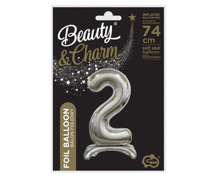Balon foliowy cyfra "2" – srebrny, 74 cm