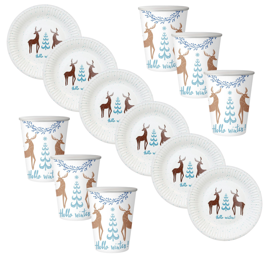 Zestaw papierowych naczyń "Hello Winter!" – 6 kubeczków i 6 talerzyków