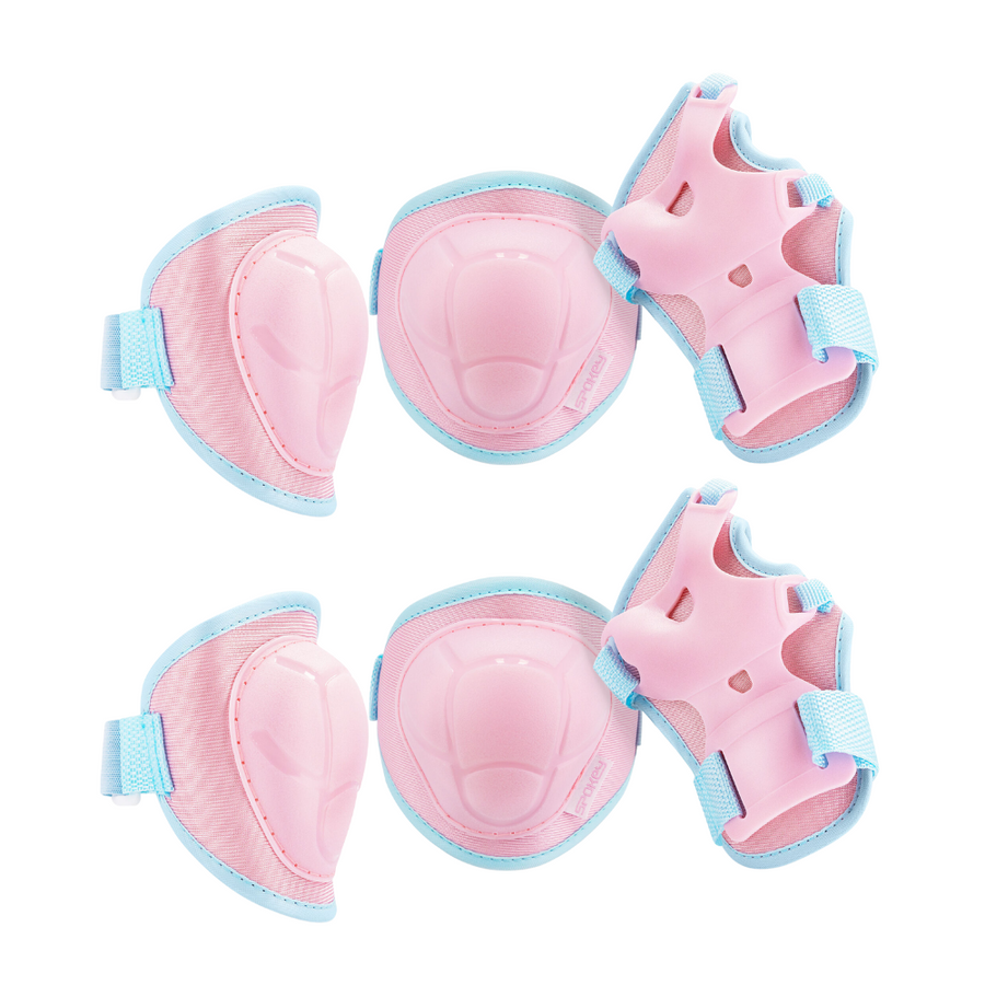 Zestaw składa się z 3 podwójnych elementów, czyli ochraniaczy na kolana, łokcie i nadgarstki.