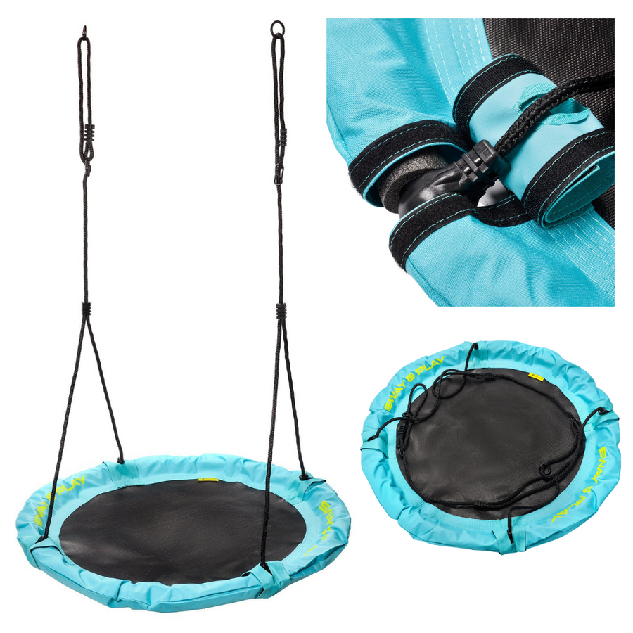 • Bezpieczne mocowanie – solidne liny umożliwiają szybkie i stabilne zawieszenie huśtawki.