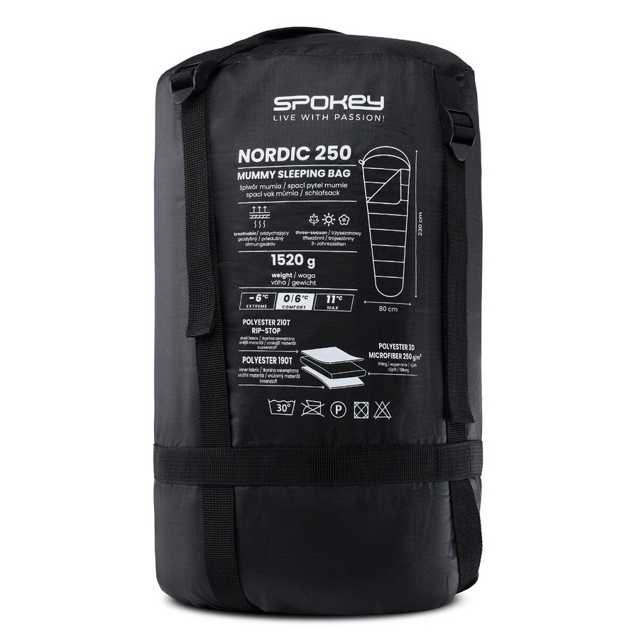 Śpiwór NORDIC 250 to trzysezonowy model, który sprawdzi się zarówno podczas chłodnych wiosennych i jesiennych nocy, jak i letnich wypraw w góry. Dzięki wysokiej jakości materiałom oraz wypełnieniu z włókien 3D Microfiber, zapewnia doskonałą izolację termiczną i optymalny komfort w zakresie temperatur od 0°C do +6°C, a w skrajnych warunkach nawet do -6°C / +11°C.