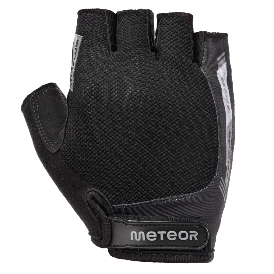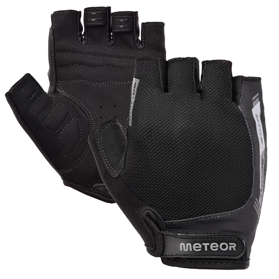 Rękawiczki Rowerowe Kolarskie Krótkie Na Rzep Bez Palców Czarne METEOR