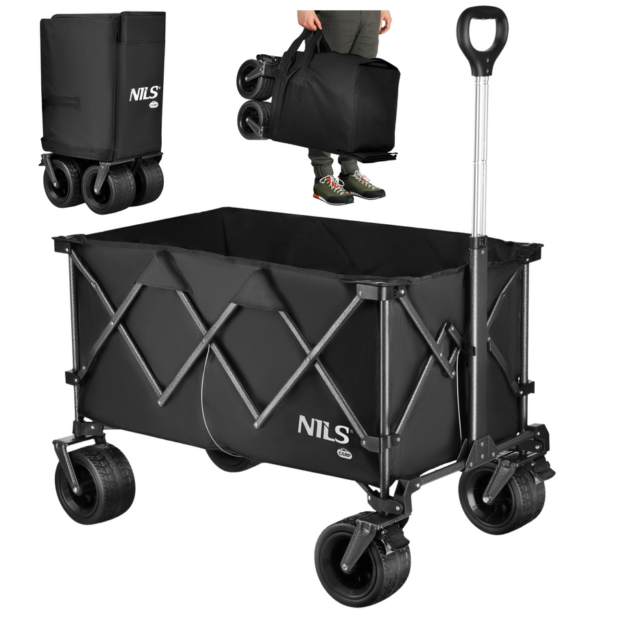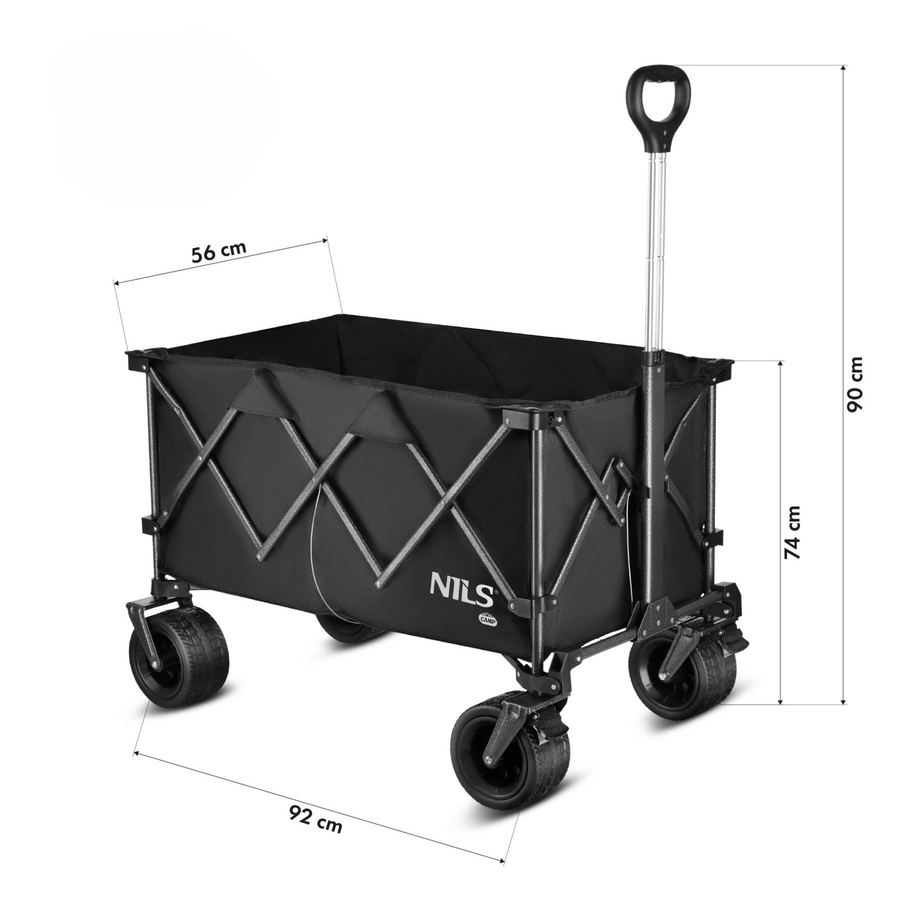 Wózek turystyczny NILS CAMP NC2604 to praktyczny i solidny towarzysz każdej wyprawy. Doskonale sprawdzi się podczas rodzinnych wyjazdów, kempingów, pikników, a także w ogrodzie. Jego wytrzymała konstrukcja, wysoka funkcjonalność i duża pojemność sprawiają, że to produkt do zadań specjalnych – niezawodny w każdych warunkach terenowych.