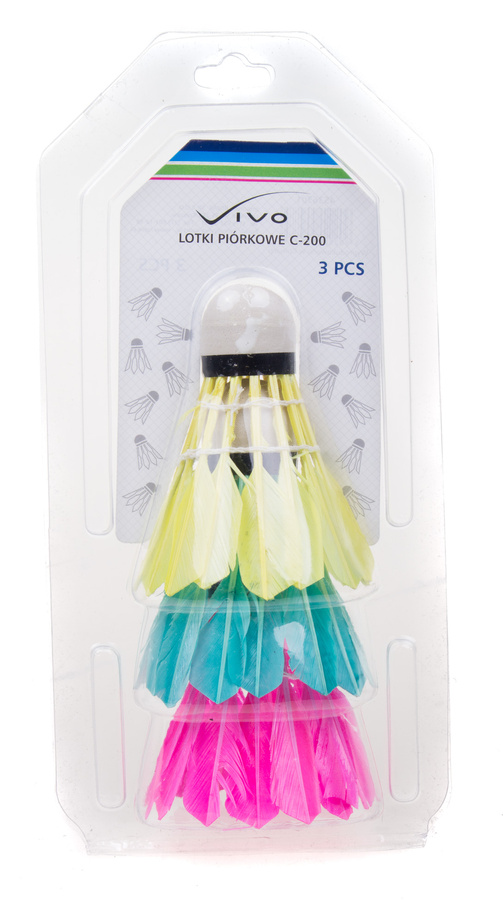Komplet 3 Lotek Do Gry Rekreacyjnej W Badmintona Piórkowe Kolorowe VIVO
