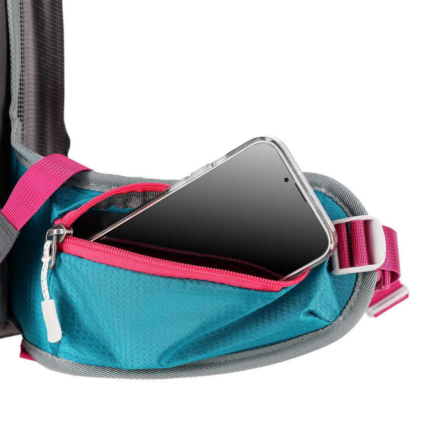 • Dodatkowe kieszenie: Na pasie biodrowym i boczne z siatki.