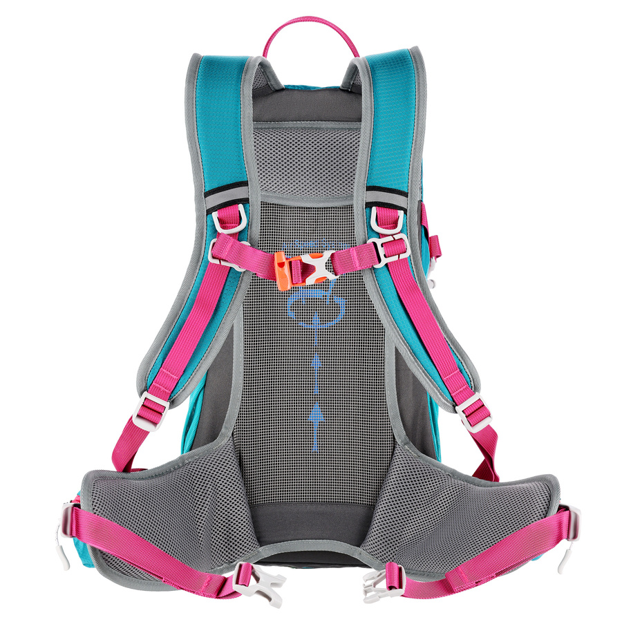 Na klamrze pasa piersiowego umieszczono zintegrowany gwizdek ratunkowy, zwiększający bezpieczeństwo w nagłych sytuacjach. Plecak oferuje również dodatkowy panel uchwytów na różne akcesoria.