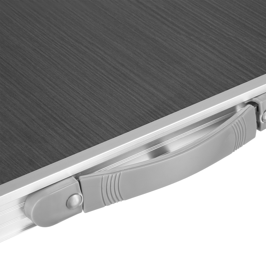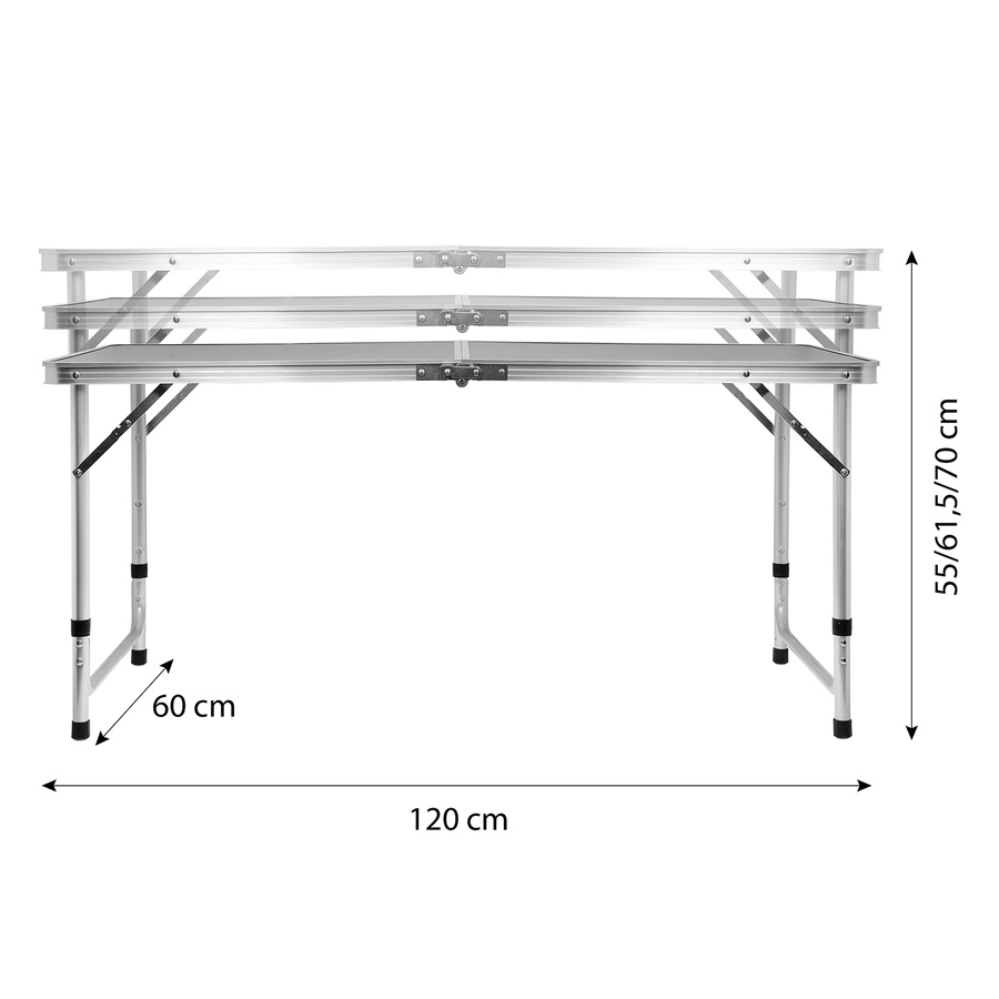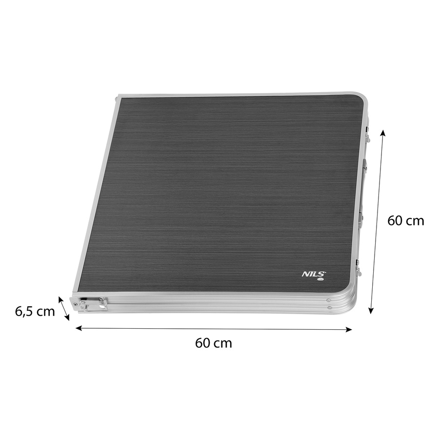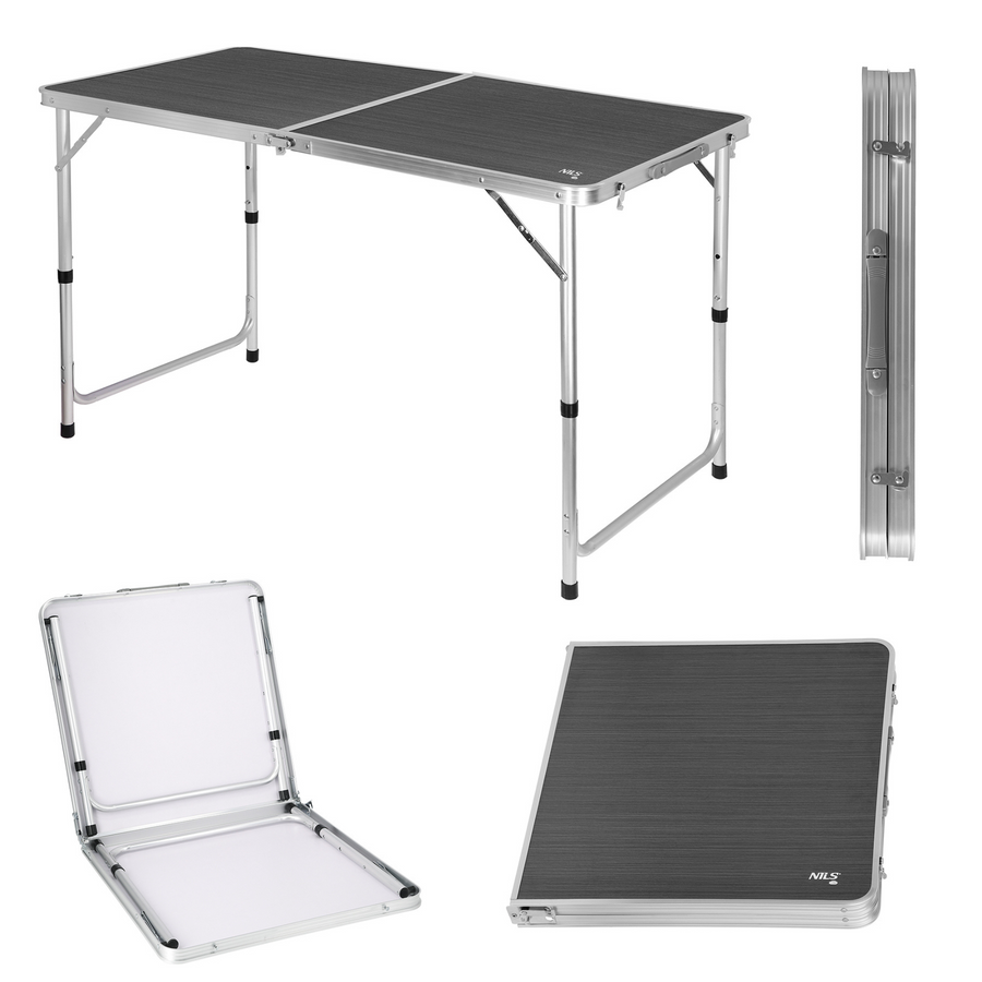 Model NC1605 został wyposażony w aluminiową konstrukcję oraz trwały blat z płyty MDF, co zapewnia lekkość, stabilność i odporność na warunki zewnętrzne. Trójstopniowa regulacja wysokości pozwala idealnie dopasować stół do potrzeb – zarówno dorosłych, jak i dzieci. Składana konstrukcja w formie walizki i praktyczna rączka transportowa sprawiają, że stół jest niezwykle łatwy w przenoszeniu i przechowywaniu.