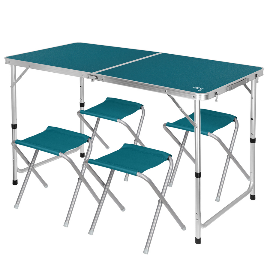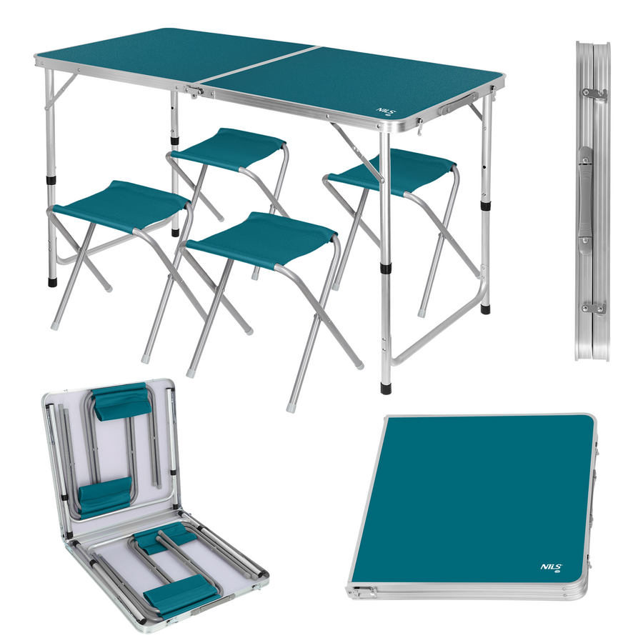 Stół i krzesła NC1633 marki NILS CAMP to świetne rozwiązanie dla każdego, kto ceni sobie wygodę i funkcjonalność podczas letnich pikników, rodzinnych kampingów czy weekendowych wyjazdów. Zestaw składa się z rozkładanego stołu i czterech kompaktowych krzeseł – wszystko złożysz do formy walizki z rączką, którą bez trudu zabierzesz ze sobą w podróż.