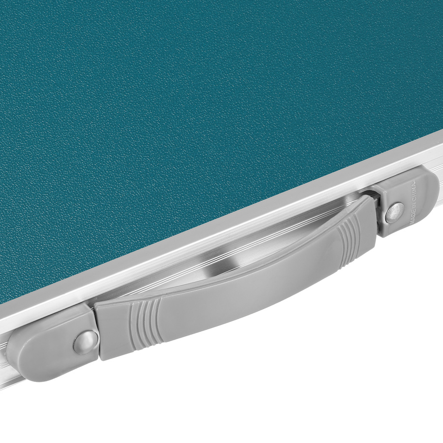 Stół posiada trzypoziomową regulację wysokości, co umożliwia dopasowanie go zarówno do potrzeb dorosłych, jak i dzieci. Stabilna aluminiowa konstrukcja w połączeniu z trwałym blatem z płyty MDF gwarantuje wytrzymałość oraz komfort użytkowania. Cały zestaw wyróżnia się lekką konstrukcją i łatwością montażu – idealnie sprawdzi się na każdym terenie.