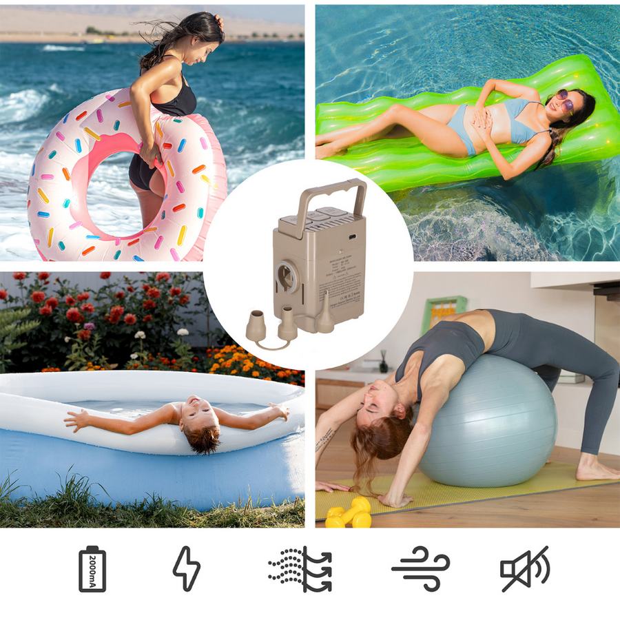 Wytrzymała konstrukcja z maksymalnym udźwigiem do 270 kg gwarantuje stabilność i wygodę przez całą noc. Odpowiednio rozprowadzone powietrze zapewnia równomierne podparcie ciała. Uniwersalna pompka z 3 końcówkami może służyć również do nadmuchiwania pontonów, basenów i innych akcesoriów.