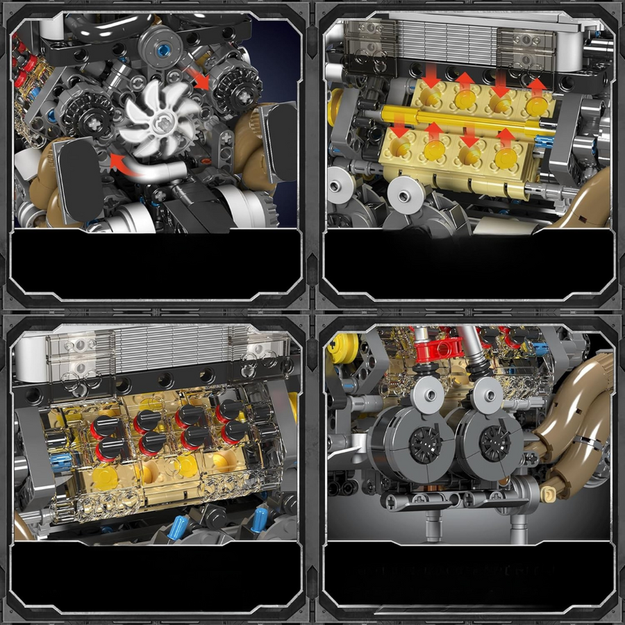 Klocki Konstrukcyjne Silnik Samochodowy W16 952 Elementy MOULD KING
