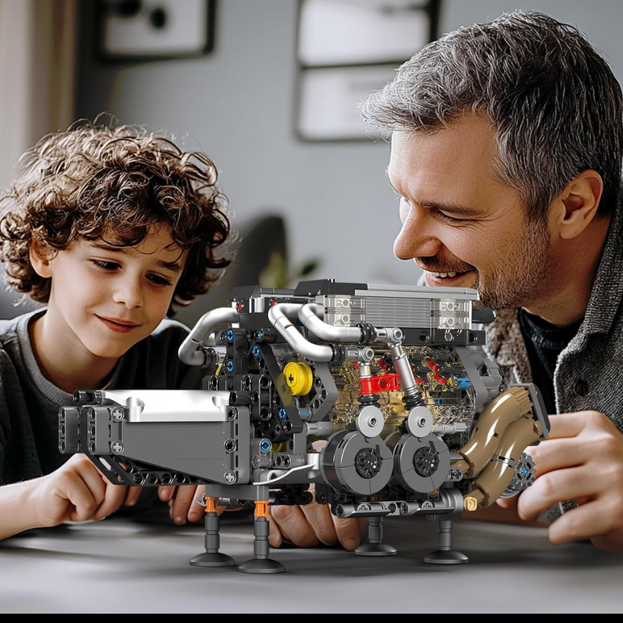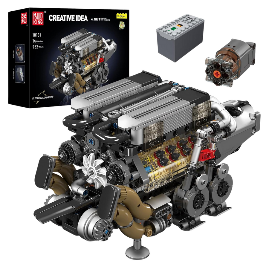 Rozpal inżynierską pasję dzięki modelowi silnika od Mould King! To wyjątkowy zestaw konstrukcyjny zawierający ponad 950 elementów, który pozwala zbudować w pełni funkcjonalny silnik z ruchomymi tłokami, wałem korbowym oraz imponującą konfiguracją twin turbo. Model wiernie odwzorowuje złożoną budowę prawdziwego silnika, w tym przezroczystą głowicę cylindrów i układ zaworów.