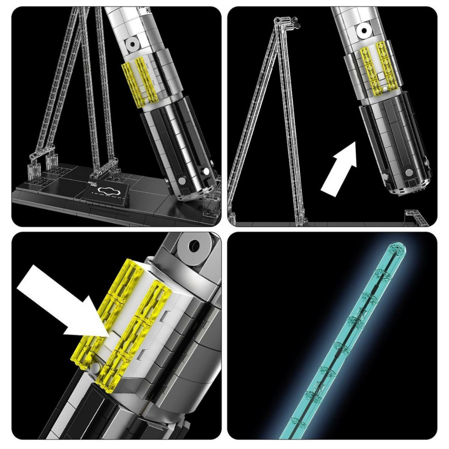 Wejdź do świata międzygwiezdnych przygód dzięki wiernie odwzorowanej replice kultowego miecza świetlnego. Ten wyjątkowy zestaw konstrukcyjny to idealna propozycja dla fanów klasycznych sag kosmicznych i budowania z klocków. Model został zaprojektowany z niezwykłą dbałością o detale – od rękojeści aż po podświetlaną klingę.