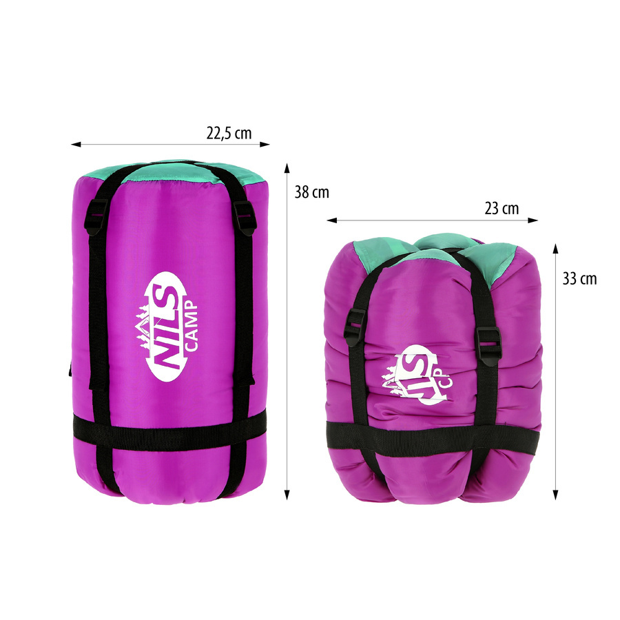 Model NC2008 (rozmiar M) wyróżnia się solidnym wykonaniem i zastosowaniem wysokiej jakości materiałów, odpornych na wilgoć i zimno. Dzięki specjalnym przeszyciom wypełnienie pozostaje równomiernie rozłożone, a kaptur ze ściągaczami pomaga utrzymać stabilne ułożenie głowy i poduszki przez całą noc. Śpiwór wyposażono w zamek zabezpieczony rzepem, który zapobiega jego przypadkowemu rozsuwaniu się. Po złożeniu mieści się w praktycznym pokrowcu kompresyjnym, idealnym do transportu.