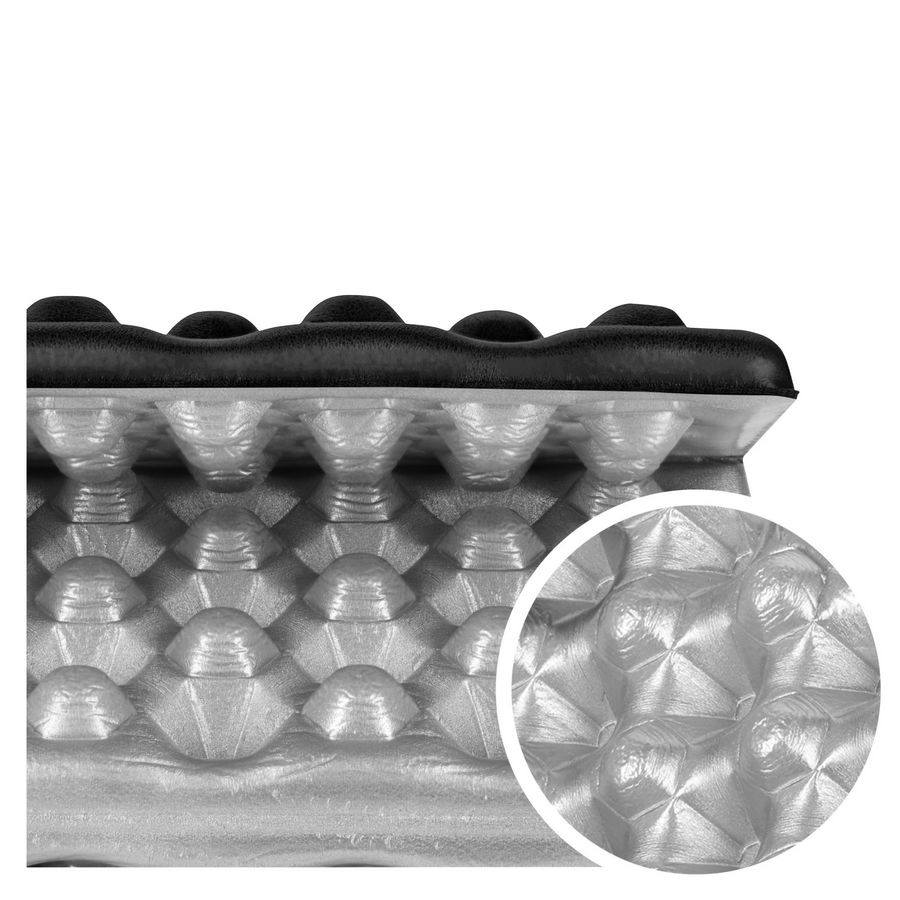 Mata wykonana została z odpornej na zużycie pianki IXPE, która zapewnia odpowiednią elastyczność i sprężystość. Dodatkowe podbicie aluminiowe od spodu skutecznie izoluje od chłodnego i wilgotnego podłoża, chroniąc organizm przed wychłodzeniem i zwiększając komfort siedzenia.