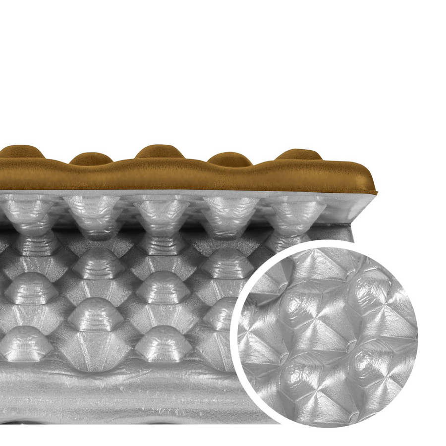 Mata wykonana została z odpornej na zużycie pianki IXPE, która zapewnia odpowiednią elastyczność i sprężystość. Dodatkowe podbicie aluminiowe od spodu skutecznie izoluje od chłodnego i wilgotnego podłoża, chroniąc organizm przed wychłodzeniem i zwiększając komfort siedzenia.