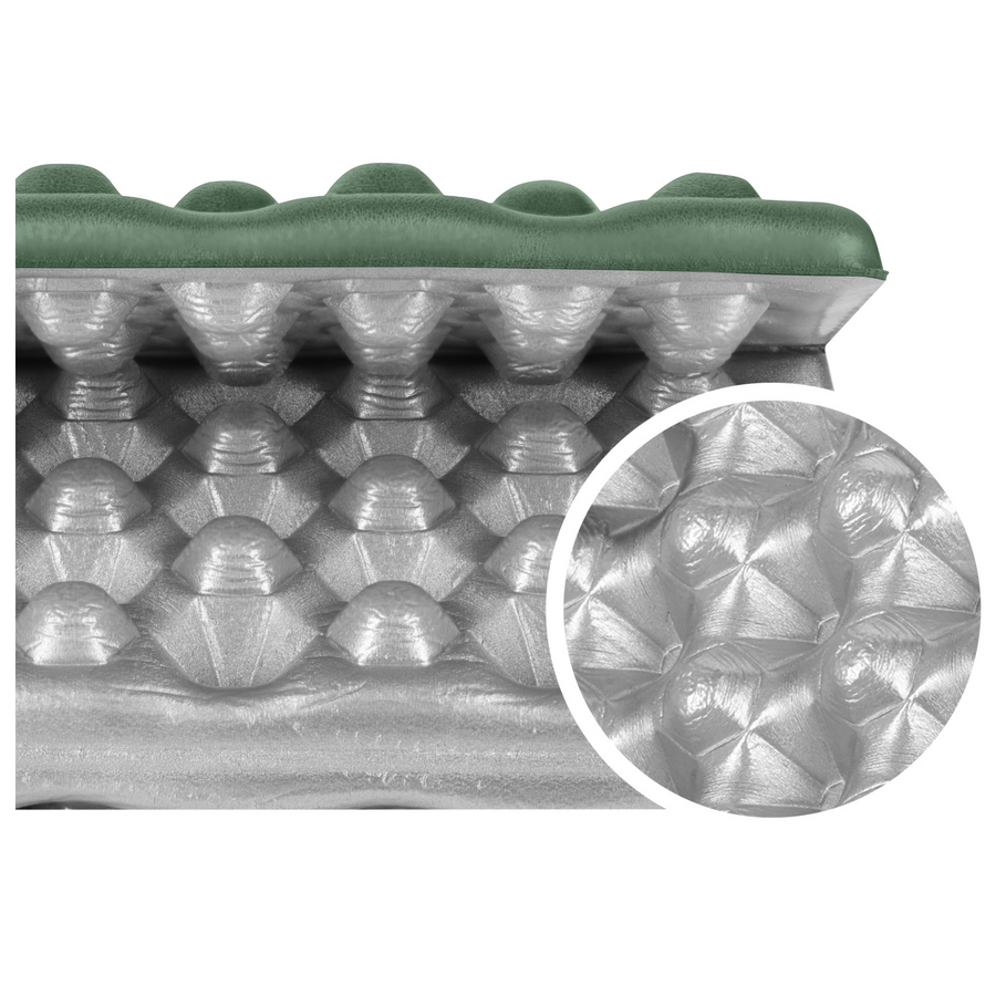 Mata wykonana została z odpornej na zużycie pianki IXPE, która zapewnia odpowiednią elastyczność i sprężystość. Dodatkowe podbicie aluminiowe od spodu skutecznie izoluje od chłodnego i wilgotnego podłoża, chroniąc organizm przed wychłodzeniem i zwiększając komfort siedzenia.