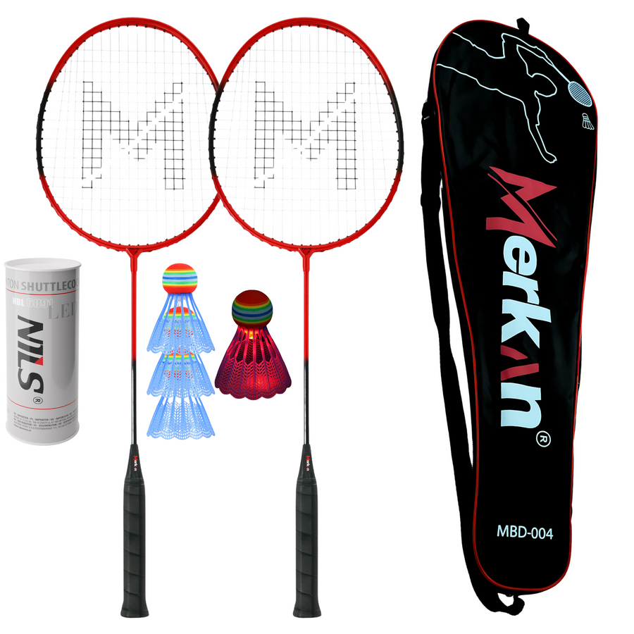 MERKAN MBD-004 to kompletny zestaw do badmintona, idealny dla graczy rekreacyjnych i średniozaawansowanych. W skład zestawu wchodzą 2 rakiety w praktycznym pokrowcu oraz 3 wytrzymałe lotki syntetyczne z bazą EVA i wbudowaną lampką LED. Dzięki temu możesz cieszyć się grą zarówno w dzień, jak i po zmroku. Solidna konstrukcja rakiet w połączeniu z aerodynamicznym profilem zapewnia doskonały komfort gry i precyzję uderzeń w każdych warunkach.