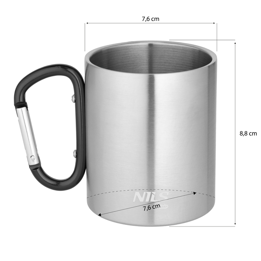 Kubek Turystyczny Stalowy Z Karabińczykiem Podróżny Kempingowy 300 ml NILS