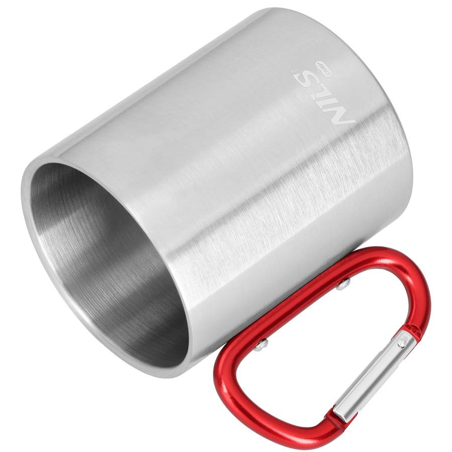 Kubek Turystyczny Stalowy Z Karabińczykiem Podróżny Kempingowy 300 ml NILS